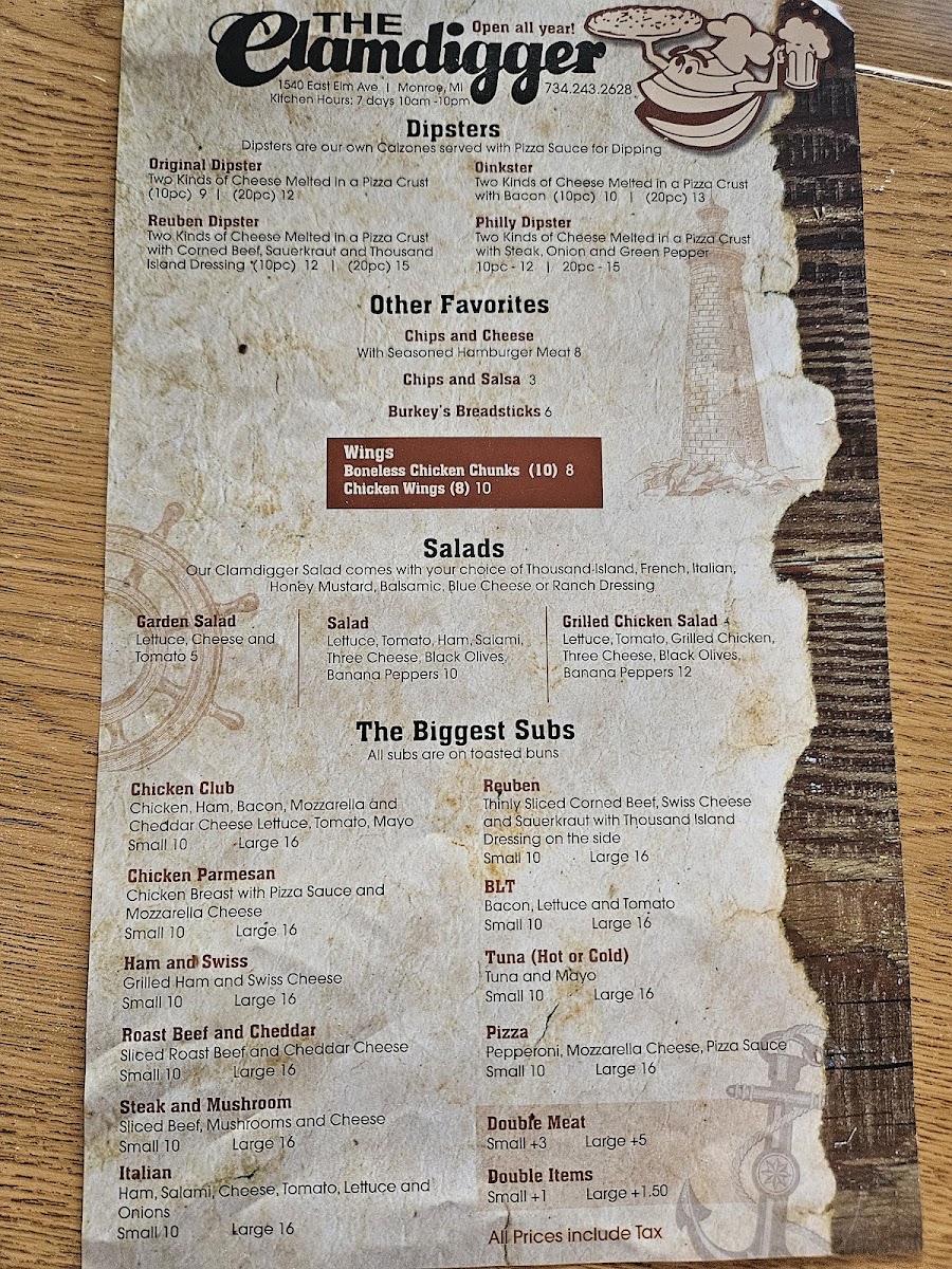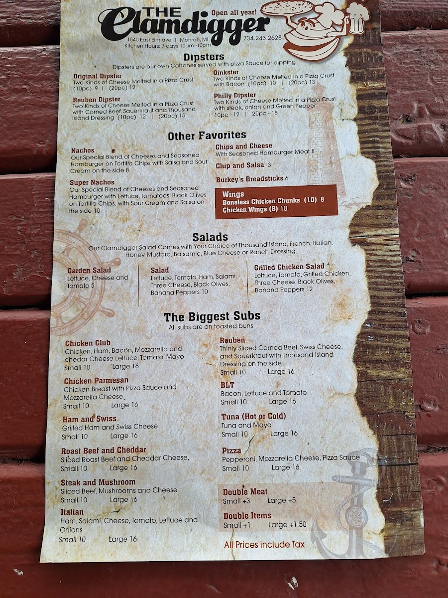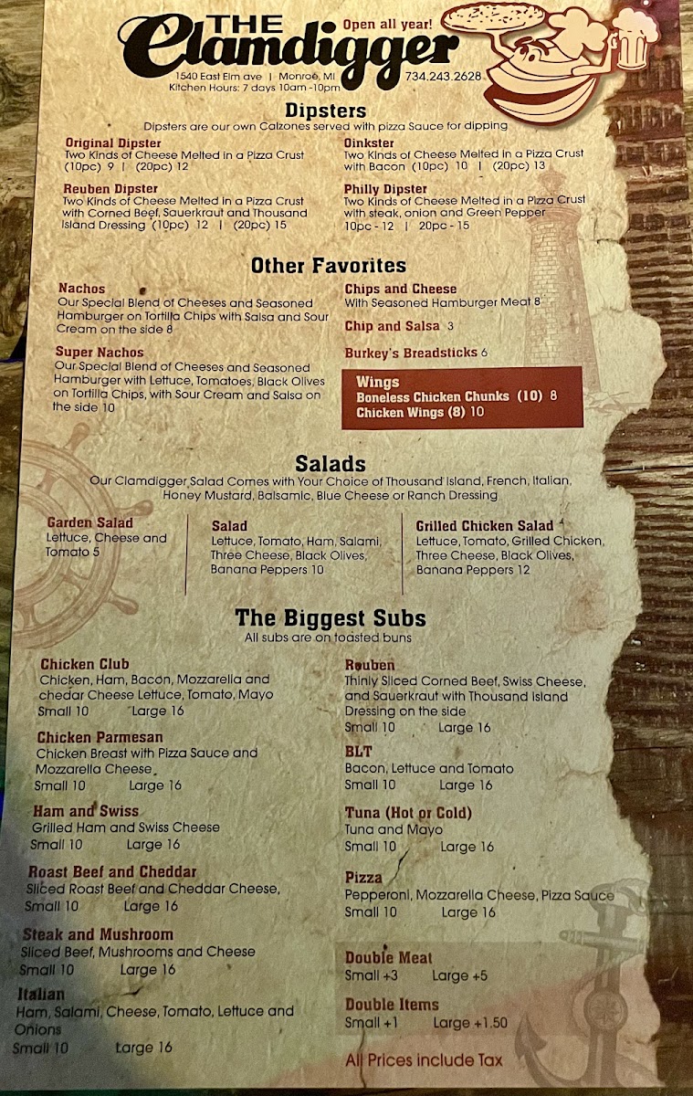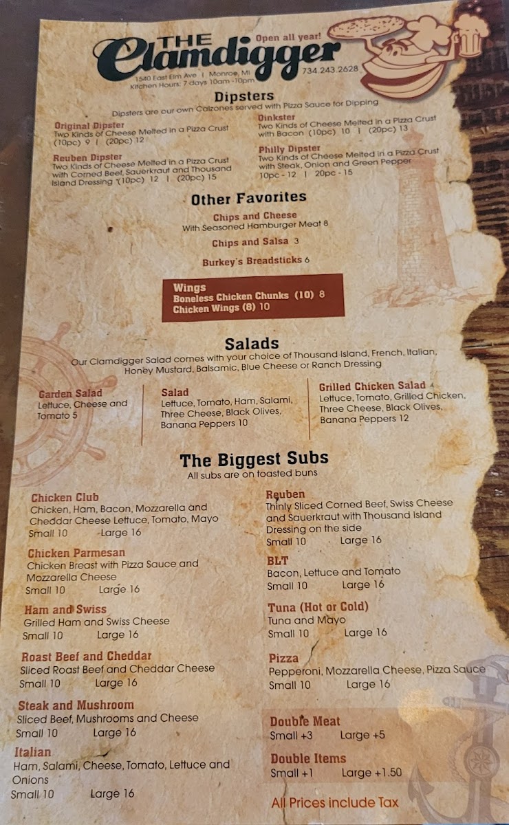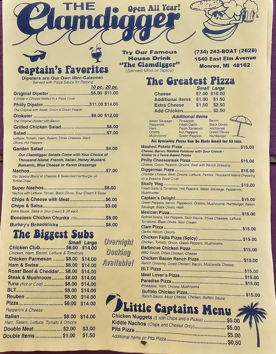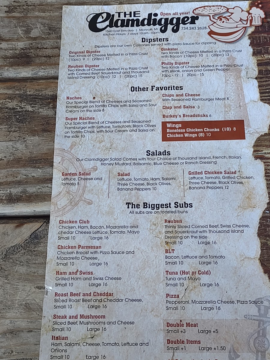 If you're in the mood for a delicious, laid-back meal, the Clamdigger Menu has something for everyone. Nestled at 1540 E Elm Ave in Monroe, MI, this menu offers a fantastic selection of fresh seafood and savory dishes, all designed to satisfy your cravings. Whether you're stopping by for a casual bite with friends or a hearty meal to enjoy on your own, you'll find a wide variety of options that hit the spot every time. From mouthwatering clam dishes to perfectly grilled steaks and tasty sides, the Clamdigger’s offerings are packed with flavor and crafted with care. You’ll also find a great selection of drinks to pair with your meal, making it easy to enjoy a relaxed and delicious dining experience. Whatever you choose, each dish on the menu is thoughtfully prepared to bring a smile to your face.